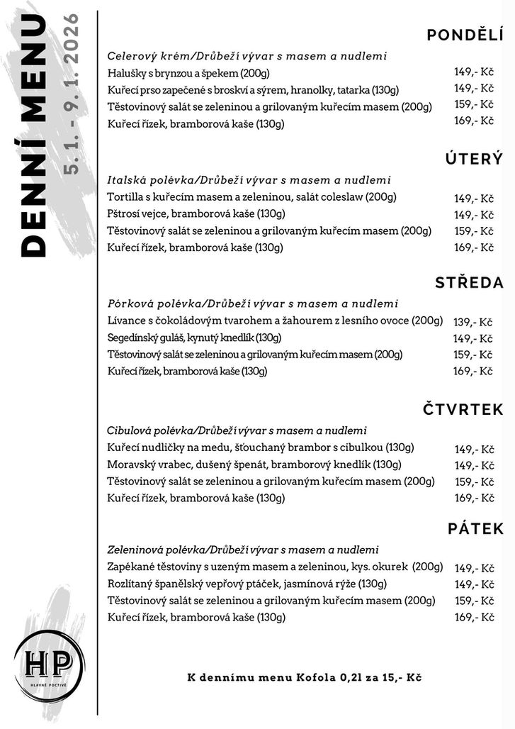 Denní menu nabízíme každý den do 14:00 nebo do vyprodání zásob.